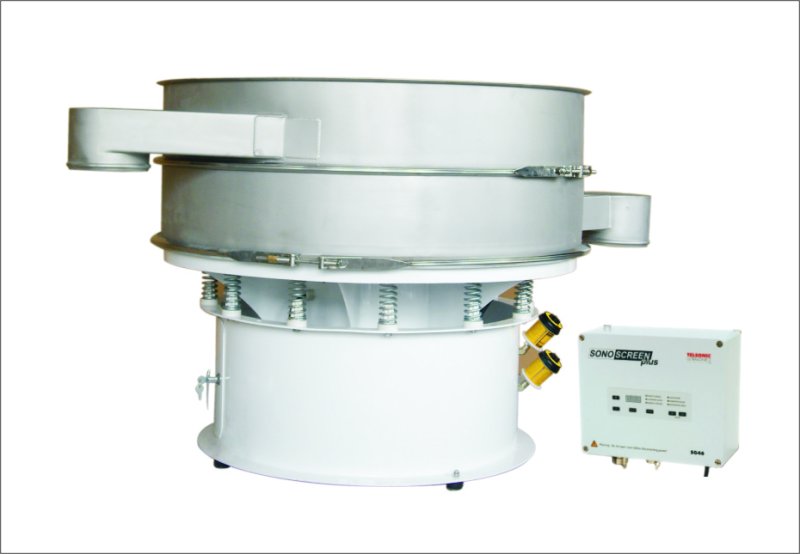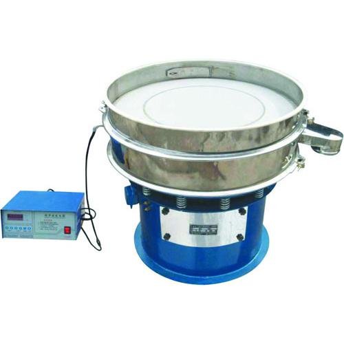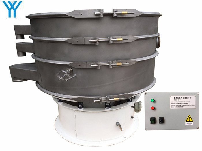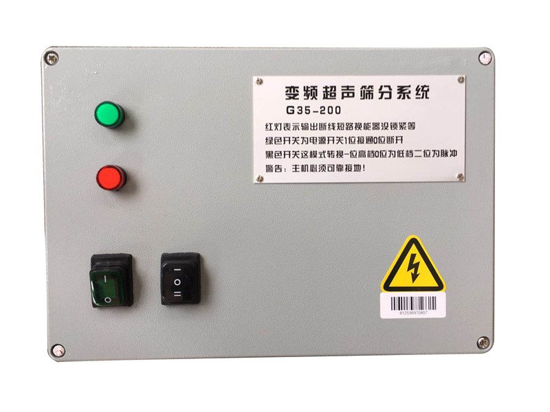 超聲波篩分系統由超聲波諧振電源、振蕩器、共振環組成。超聲波諧振電源産生的高頻電振蕩由振蕩器轉換成高頻正弦形式的縱向振蕩波,這些振蕩波傳到共振環上使共振環産生共振,然後由共振環将振動均勻傳輸至篩面。篩網上的物料在做低頻振動的同時,疊加上超聲波振動,既可防止網孔堵塞,又可提高篩分産量和質量。