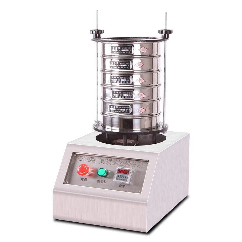标準檢驗篩操作方法:1.标準試驗篩要水平放置;确認電源和銘牌要求相符,并确保接地;振動部分不能與其它物體接觸;各部螺栓是否鎖緊。2.根據被檢驗物料及相應的标準來确定要選用的标準篩框。3.把标準篩框按孔徑從小到大,從下到上依次疊放到篩框底座上。4.把被檢驗物料放入上端的标準篩框裏,蓋上标準篩上蓋,根據标準篩框的總高度調整調節杆高度,然後用壓闆和鎖緊螺母對标準篩框進行定位壓緊(注:兩側要用力應一緻)。5.根據物料性質及投料量,在定時器上設定運行時間,然後打開電源開關,标準試驗篩即開始工作。6.标準試驗篩工作停止後,旋開鎖緊螺母,取下壓闆,小心取走标準篩框。7.切斷電源。