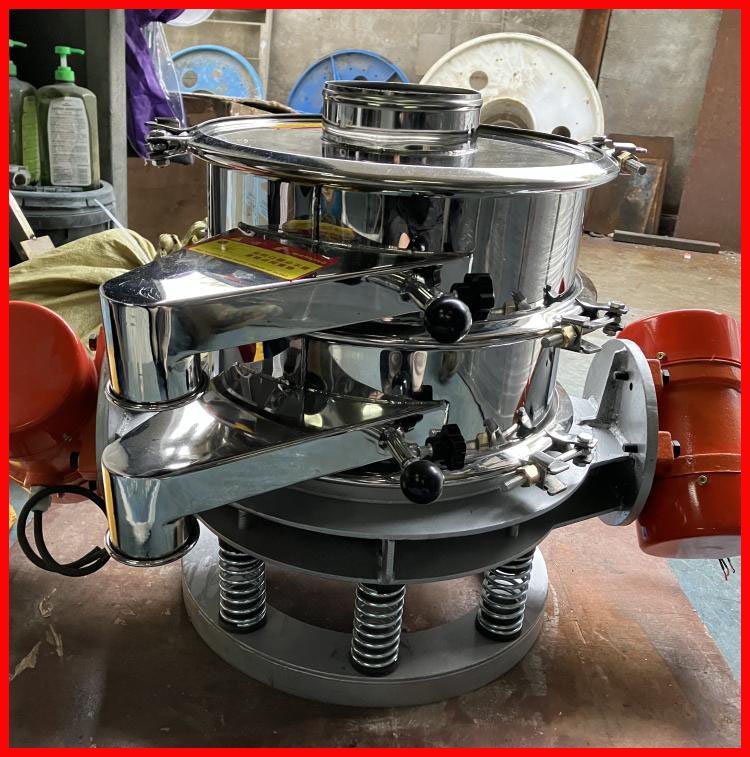 直排篩利用振動電機利用其軸上下端的兩組偏心塊(不平衡偏心塊)的相位角以及兩台電機之間的交叉角度将振動電機的旋轉運動變爲水平、垂直、傾斜以及離心作用的多作用力重疊,再将這種作用力傳遞給篩面,從而達到篩分的目的。改變上下偏心塊的相位角和重量,可以改變激振力的大小和物料的運動軌迹。